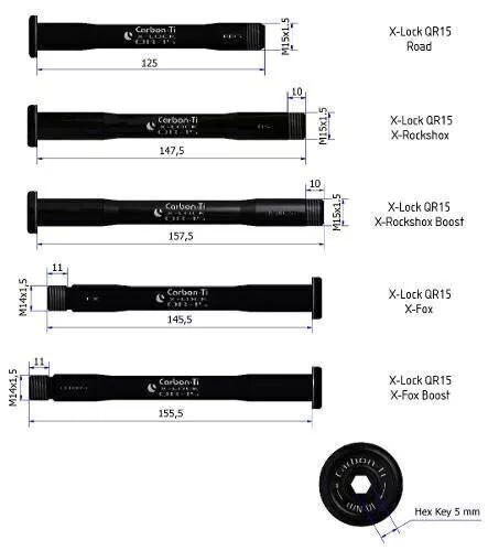 Horquilla Rock Shox RS1 SID Reba Pike Recon Eje 15x100 36gr X-Lock QR15 X-RockShox Eje pasante delantero para horquillas Rock Shox Eje superligero Aluminio 7075 para horquillas RockShox QR15. Excelente rigidez, eje de grosor variable, gráficos grabados con láser, para ajustar con llave Alen hexagonal de 5 mm para un cierre rápido y seguro. Probado por los pilotos Specialized Factory Racing en los Juegos Olímpicos y en las etapas de la Copa del Mundo. Made in Italy CÓDIGO: XLQR15RS PESO: 36 g Forks compatibility list RockShox RS-1 (2015) RockShox Sid WC, XX, RCT3, RLT, RL (2012-2015) RockShox Reba RLT, RL (2012-2015) RockShox Pike DJ, RC, RCT3 (2014-2015) RockShox Revelation WC, XX, RCT3, RLT, RL (2014-2015) Lauf TR 29 MUY IMPORTANTE: Utilice el gráfico con las medidas del producto para asegurarse de la compatibilidad con su horquilla Rpck Shox ENVIOS A TODO EL PAIS